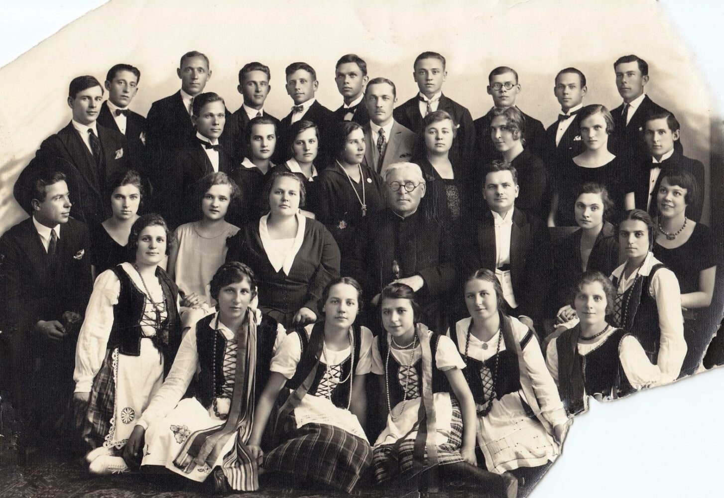 ![„Dainos“ draugijos Panevėžio skyriaus nariai – operetės „Čigonė Aza“ vaidintojai – su draugijos pirmininku muziku Mykolu Karka (3-ioje eilėje 3-ias iš kairės). Panevėžys. [1932 m.]. PAVB, Mykolo Valdo Jataučio fondas F176](https://paneveziokrastas.pavb.lt/wp-content/uploads/2025/10/04b-F176-180x245.jpg)