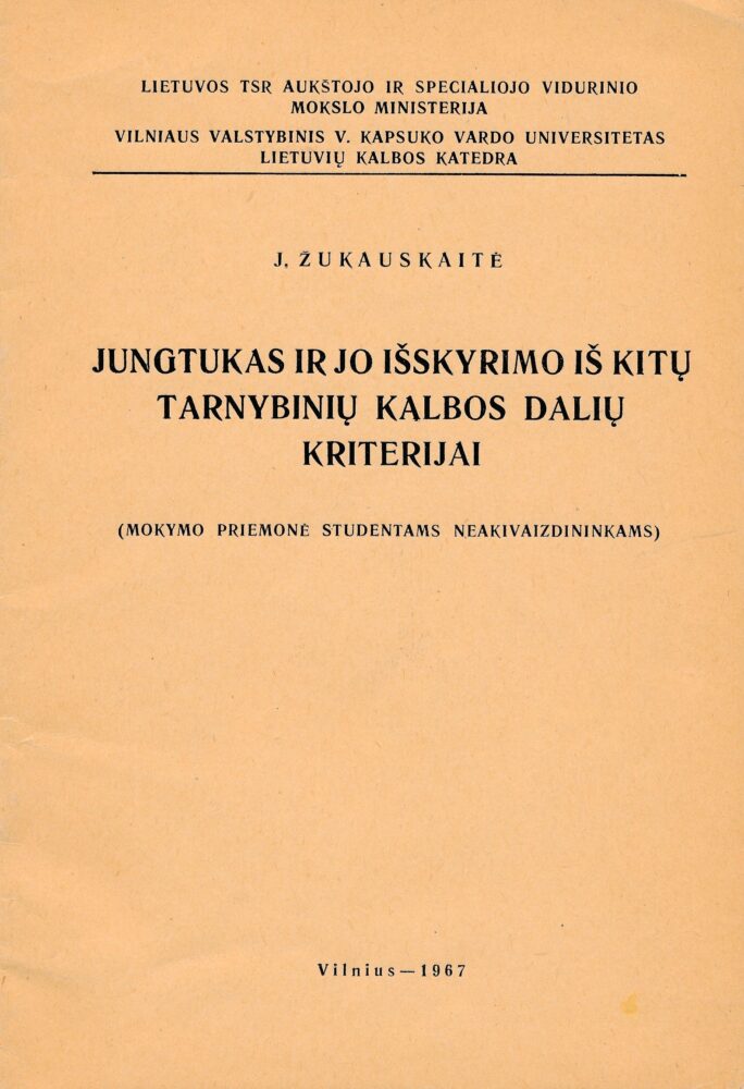 ![Jungtukas ir jo išskyrimo iš kitų tarnybinių kalbos dalių kriterijai : (mokymo priemonė studentams neakivaizdininkams) / J. Žukauskaitė ; Lietuvos TSR Aukštojo ir specialiojo vidurinio mokslo ministerija, Vilniaus valstybinio V. Kapsuko vardo universitetas. Lietuvių kalbos katedra. Vilnius : [s.n.], 1967. 20 p.](https://paneveziokrastas.pavb.lt/wp-content/uploads/2026/03/24-Jungtukas-ir-jo-isskyrimo-180x245.jpg)