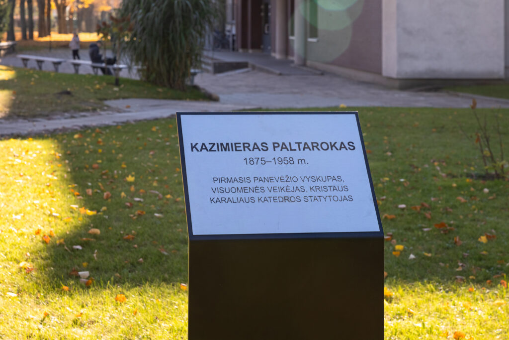 Kazimieras Paltarokas (1875 10 22–1958 01 03) – vyskupas. 1926 05 02 konsekruotas vyskupu. 1926–1957 m. – Panevėžio vyskupas. Jo rūpesčiu buvo pastatyta Panevėžio Kristaus Karaliaus katedra. 2018 m. informacinė lenta pastatyta prie K. Paltaroko gimnazijos jo vardu pavadintai gatvei pažymėti. 2025 m. informacinė lenta pakeista nauja.