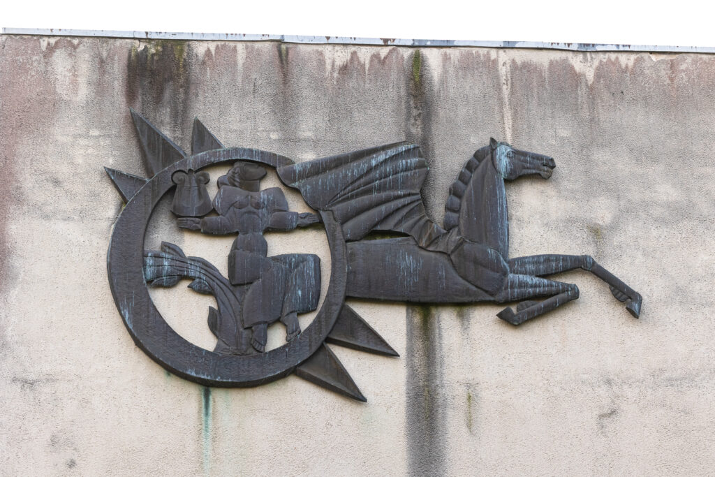 Kaltinto vario pano „Pegasas“ sukurtas naujam Panevėžio rajono savivaldybės viešosios bibliotekos pastatui, kuris duris atvėrė 1978 m.